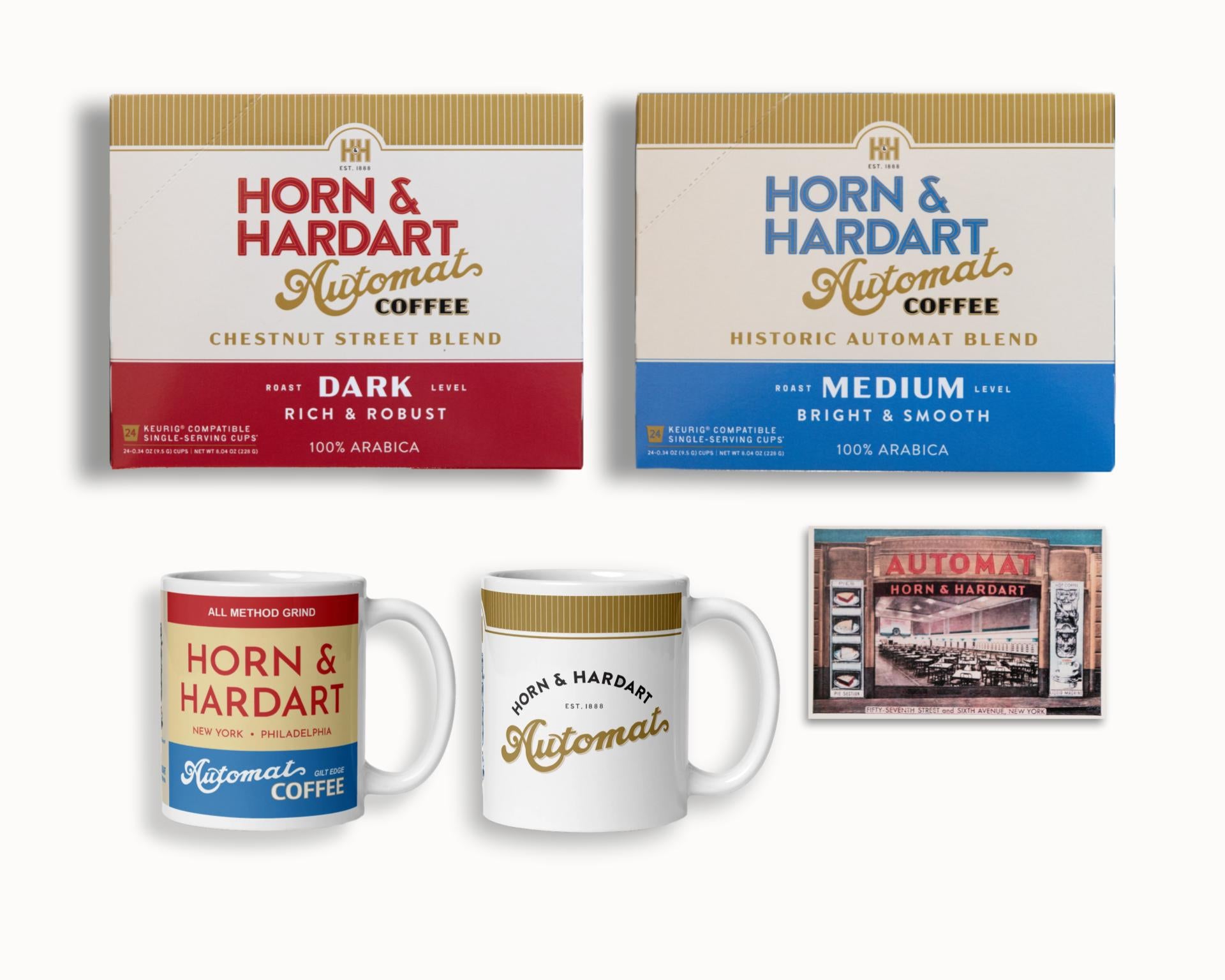 A curated collection that captures the spirit of Horn & Hardart. This set blends timeless design, signature coffee, and a touch of history for a truly nostalgic experience.